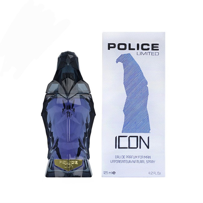 ادوپرفیوم مردانه پلیس لیمیتد آیکون عطری گیاهی و شیرین است. مثل همیشه پلیس طراحی متفاوت و عجیب برای عطر خود انتخاب کرده است. شیشه به شکل مجسمهی یک شاهین کریستالی است که به رنگ آبی تیره درآمده و قصد دارد نماد قدرت و شکوه مردانه روی میز یا کلکسیونتان باشد. در بخش پایینی این شاهینِ نشسته، روی پلاکی طلایی نام آیکون (Icon) و برند (Police) نظرتان را جلب میکند. بر خلاف بسیاری از عطرهایی که ظاهر عجیب و غریب دارند، در دست گرفتن شیشهی این عطر و استفاده از آن به دلیل فرم شیشه ساده است.